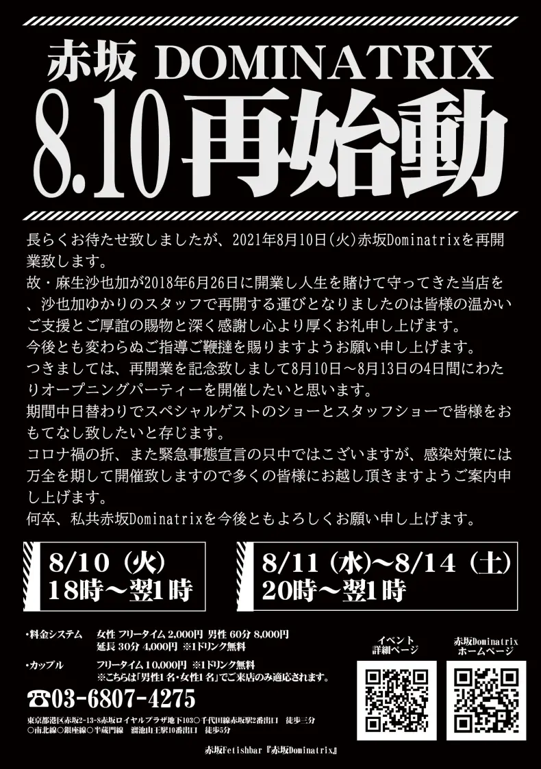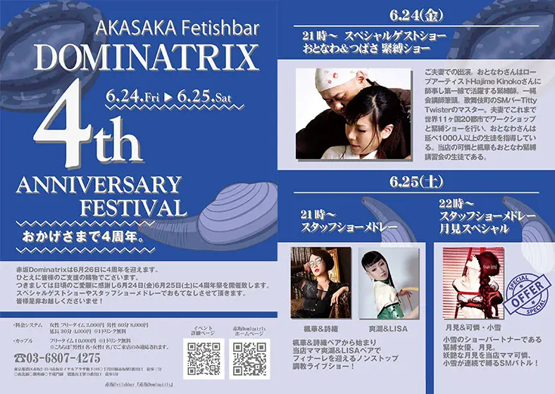 おかげさまで当店、SMバー赤坂Dominatrixは2025年6月26日に7周年を迎えます。