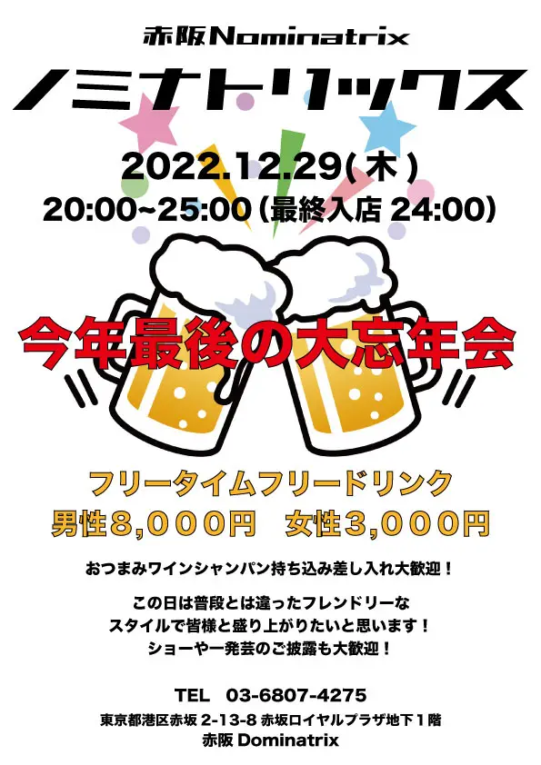 ノミナトリックスとはキャストとお客様を交えた忘年会です。