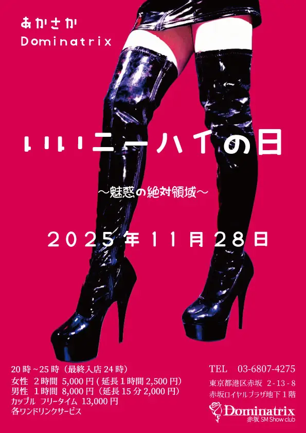 この日はキャストがニーハイブーツやニーハイストッキングでお待ちしております。